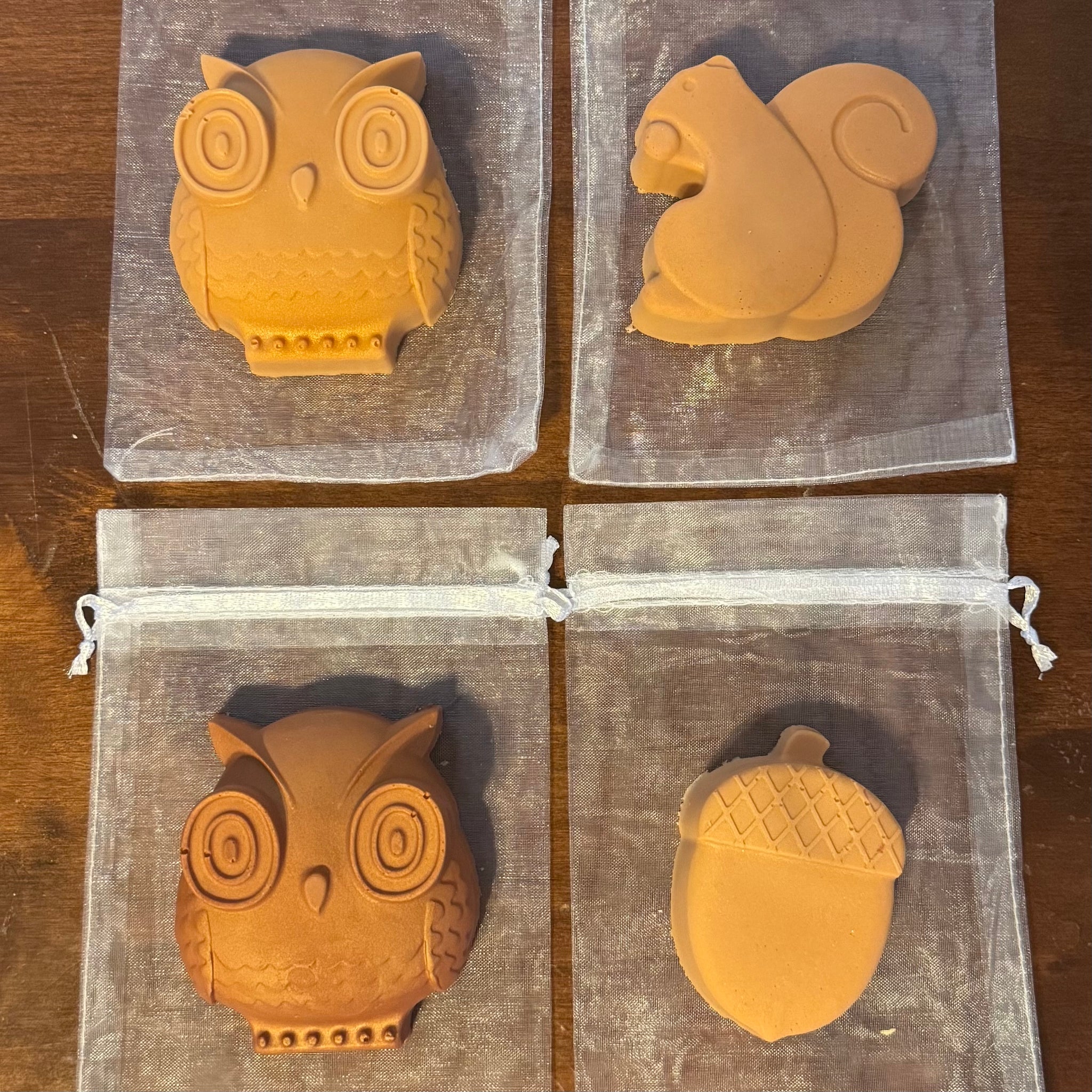 These adorable fall melt-and-pour soaps are handmade and ready to add a touch of cozy to your sink or shower. Choose from: